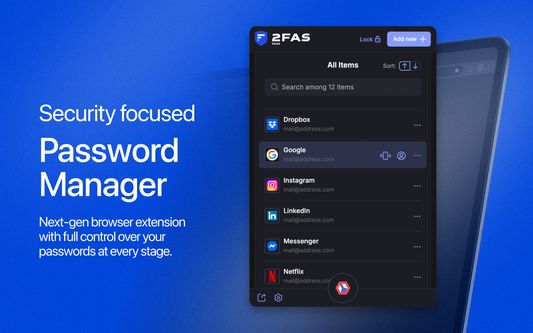 2FAS Pass Browser Extension is a next-gen password manager with no compromises in security and full control over your data at every stage. It allows you to enter your passwords faster and with no accounts required!