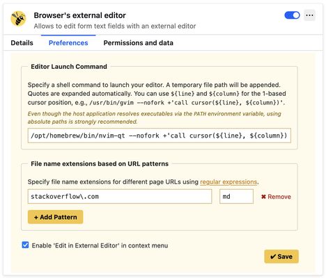 Edit any text field in Firefox using your favorite external editor. Perfect for long-form writing, code editing, or using custom tools outside the browser.